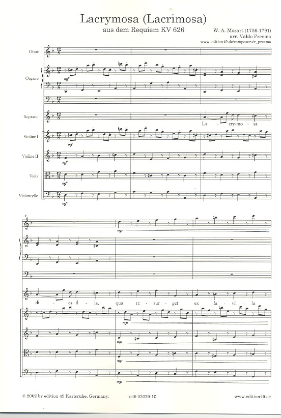 Produktinformationen "Lacrimosa aus dem Requiem KV626"