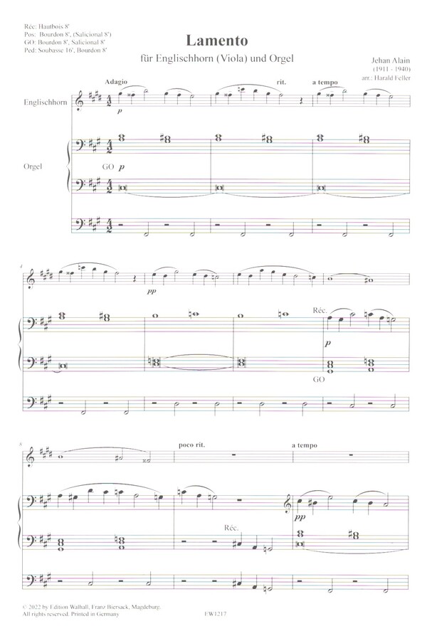| Untertitel: | für Englischhorn/Oboe (Viola) und Orgel |