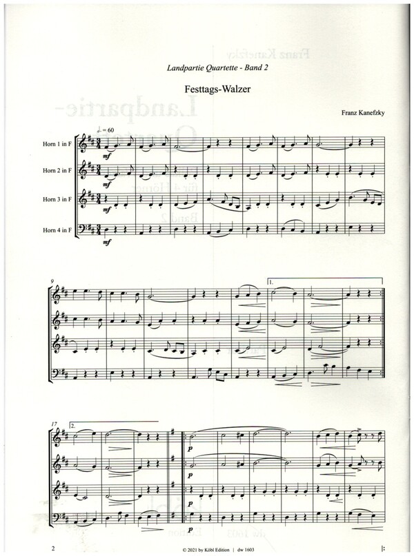 Polkas und Walzer für Blechbläser Festtags-Walzer Mittagspolka Faulpelz-Walzer