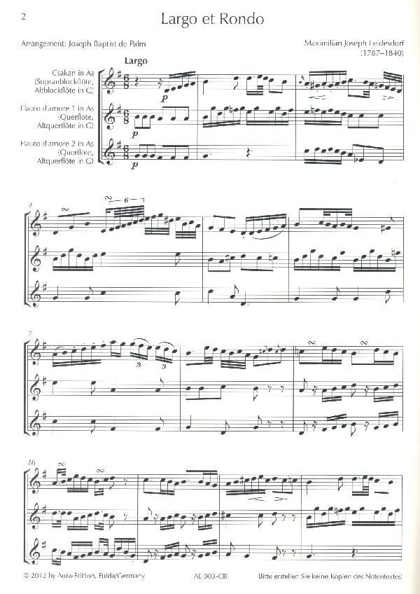 | Untertitel: | für Csakan und 2 Traversflöten (Blockflöte und 2 Flöten) Partitur und Stimmen |
