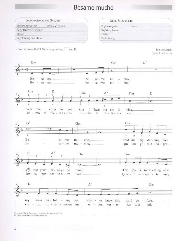 Keyboard Klangwelt Boarder, Steve, Arr. Besame mucho Cielito Lindo Desafinado La Bamba Lambada Mambo No.5 Pabellon Samba de Janeiro Samba Lélé The girl from Ipanema Tico Tico