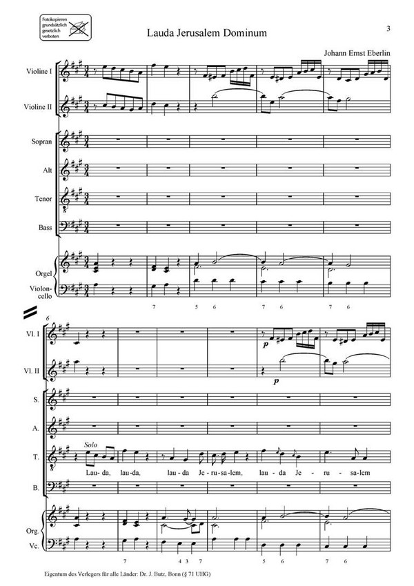 | Untertitel: | für Soli, gem Chor, 2 Violinen, Violoncello und Orgel Partitur |