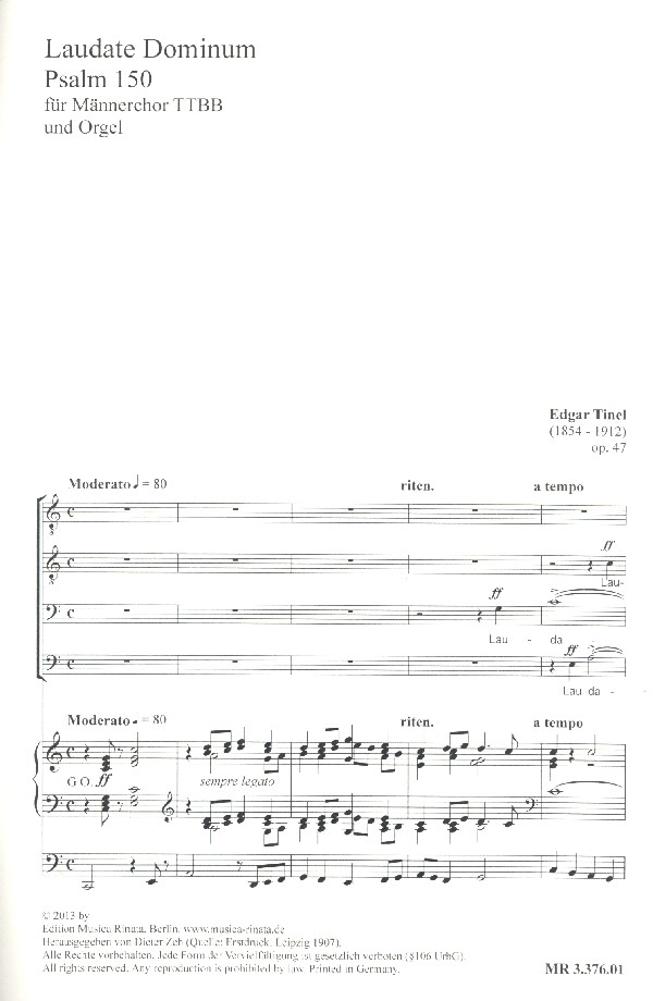 | Untertitel: | für Männerchor und Orgel Partitur |
