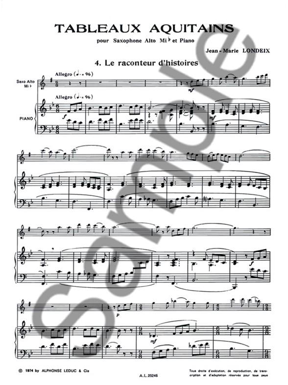 | Untertitel: | saxophone alto et piano 4 tableaux aquitains |