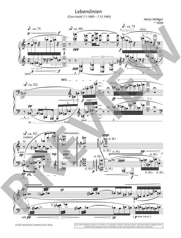 Die Klaviergötter meiner Jugend waren Dinu Lipatti und Clara Haskil, beide geheimnisumwoben, verzaubernd. Während ich Lipatti nur von seinen Schallplatten kannte, durfte ich Clara Haskil zweimal live im Konzert erleben, in Burgdorf und in Luzern. Ja, sogar ein Autogramm hatte ich mir von ihr erbettelt. Ihr traumwandlerisches, fast schwereloses Spiel ist bis heute mein Ideal geblieben. Mein für den Concours Clara Haskil geschriebenes Klavierstück versucht, die Linien ihres einsamen, schmerzgezeichneten, von unerbittlicher Selbstkritik und Selbstlosigkeit bestimmten Lebens nachzuzeichnen.