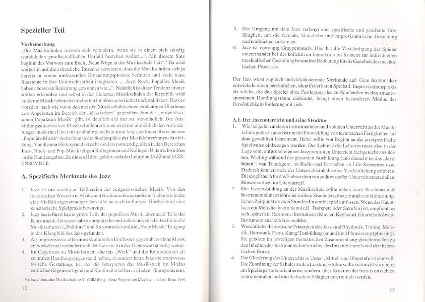 Lehrplan Jazz und Jazz-Ensemble