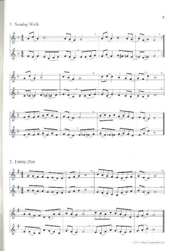 Sunday Walk Funny Duo Calm Music Bertie's Whistle Smile Waves Ramona's Music Dixie Dot-Study Ballad Happy Light Feeling Moody Ballad Arabian Waltz Articulation-Study Lucy's Swing Jazz-Waltz-Study Le coq quantant (Thema und Variationen) Duo alla hongares