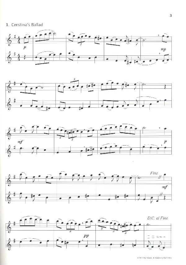 Cerstina's Ballad Kleines Swing-Duo Slow Bossa Mary's Waltz Funk Shuffle Staccato- and Interval-Study Blues-Scale-Music Medium Swing Swing-Duo Funny Chromatics Chromatic Blues Honey-Bee-Dance Medium Up-Swing Jazz-Walzer Manuela's Swing Swinging Flutes Irish Swing