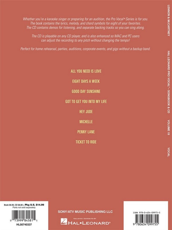 Better than Karaoke CD with unique Pitch-Changer Sing 8 big Screen Hits with a professional Band Michelle All You need is Love Eight Days a Week Good Day Sunshine Got to get You into my Life Hey Jude Penny Lane Ticket to ride