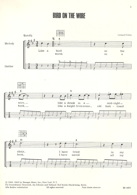 BIRD ON THE WIRE STORY OF ISAAC A BUNCH OF LONESOME HEROES SEEMS SO LONG AGO NANCY THE OLD REVOLUTION THE BUTCHER LADY MIDNIGHT YOU KNOW WHO I AM TONIGHT WILL BE FINE