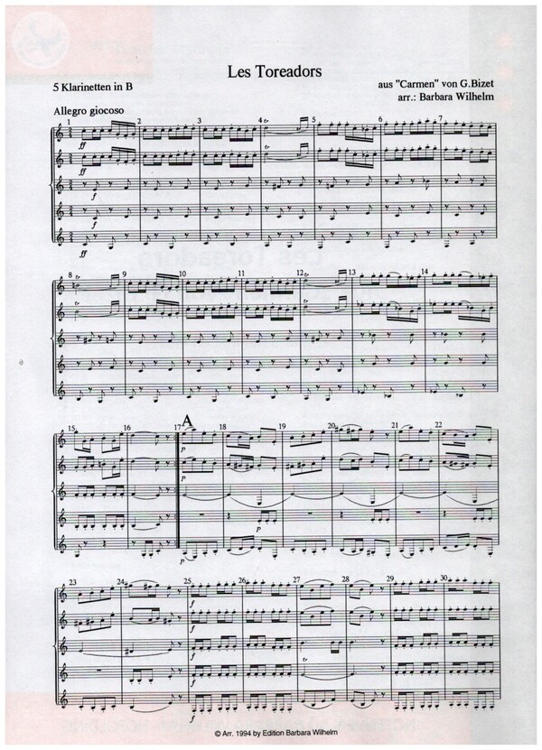 | Untertitel: | für 5 Klarinetten Partitur und Stimmen |