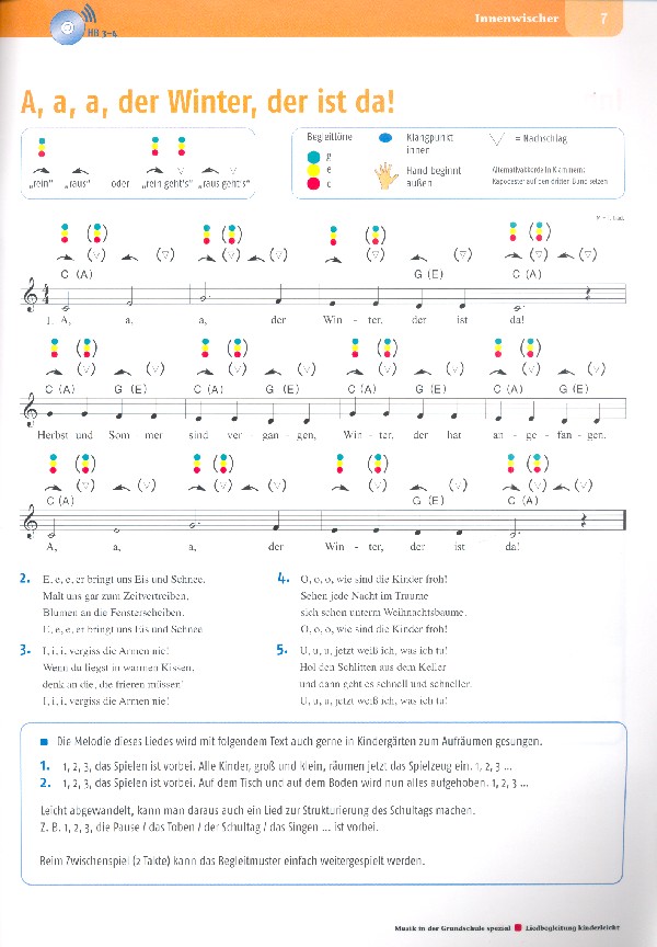 Musik in der Grundschule spezial 20 Lieder mit spielend einfachen Begleitmustern für die Grundschule Guten Morgen, good morning A, a, a, der Winter der ist da The Muffin Man The Lion Sleeps Tonight Immer wieder kommt ein neuer Frühling Geister-RocknRoll Feliz Navidad Stille Nacht Old MacDonald had a Farm Happy Birthday Sing Together Hambani kahle - Hejo Spann den Wagen an Havana Un poquito cantas Ein Hase saß im tiefen Tal Kanon-Quodlibet Faded Obwisana sana Shape of You