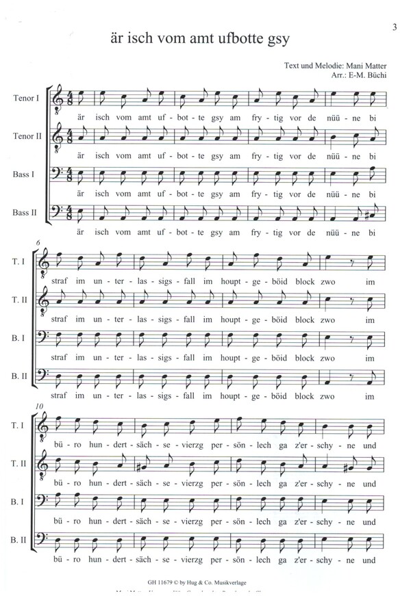 Büchi, Ernst-Markus, arr. Är isch vom amt ufbotte gsy Alls wo mir id finger chunnt Ballade (Lied zum film dällebach kari) Bim coiffeur Chue am waldrand Dr alpeflug