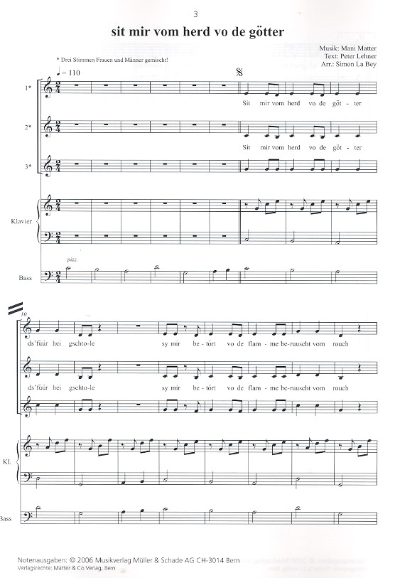 La Bay, Simon, arr. Sit mir vom herd vo de götter D'meierysli Wenn doch nume die Es git e bueb mit name fritz