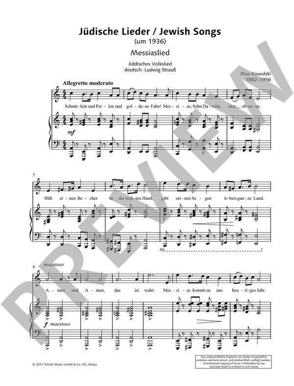 Paulsen, Melinda, ed Schader, Luitgard, ed Jüdische Lieder (um 1936): Messiaslied Ein Lied an die Schechina Mittenwegs steht ein Baum Zum Sabbatausgang Heine-Lieder (1937): Der Tod, das ist die kühle Nacht Wie des Mondes Abbild zittert Ein schöner Stern geht auf in meiner Nacht Mir träumte einst von wildem Liebesglühn Salomo Werdet nur nicht ungeduldig Sie saßen und tranken am Teetisch Englische Lieder (1941-1946): Sweet Chance, that led my steps abroad Roses and Thorns The Cloths of Heaven An Epitaph