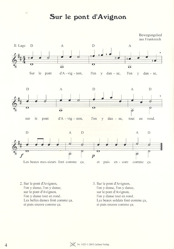 San Juan Romanze Kol Dodie Rock my Soul Skip to my Lou Home on the Range The Streets of Laredo Sur le pont d'Avignon Triumphmarsch Ein Hase saß im tiefen Tal Was müssen das für Bäume sein In einen Hering jung und schlank Oh my Darlin Alouette Ein Mann der sich Kolumbus nannt Yankee Doodle Samba El barranco My Bonny is over the Ocean