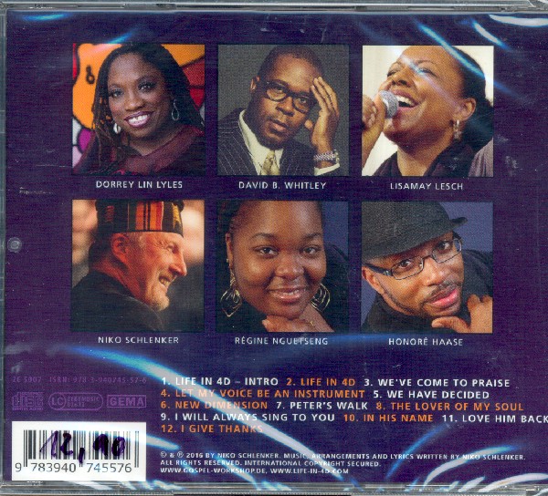 11 neue Gospelsongs I give Thanks I will always sing to You In his Name Let my Voice be an Instrument Life in 4 D Love him back New Dimension Peter's Walk The Lover of my Soul We have decided We've come to praise