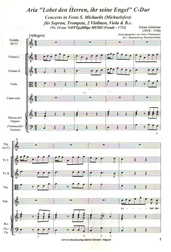 Tobias Volkmar Werke Kantaten con Tromba Band 6 (aus Gottgefällige Music-Freude 1723) Thielemann, Arne, ed Concerto in Festo S. Michaelis Kantate