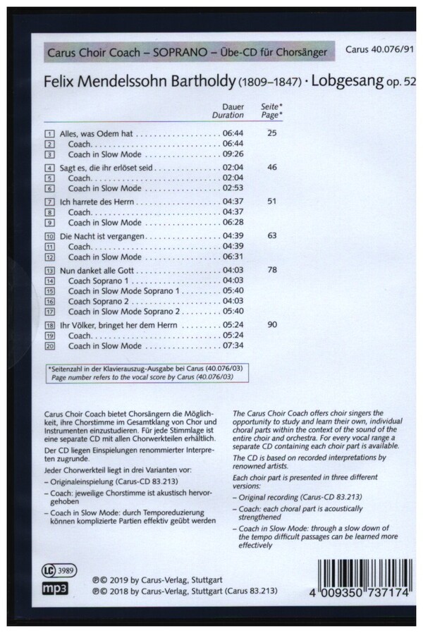Carus Choir Coach Originaleinspielung Coach mit Klavierbegleitung (und Originaleinspielung im Hintergrund) Coach in Slow Mode (Temporeduzierung)
