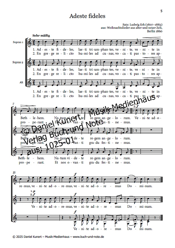 Adeste fideles SSA (Satz: Erk, Ludwig) Davids Stadt SSA (Satz: Duwe, Karl) Die Barmherzigkeit Gottes SSA (Satz: Johannes Schmidlin / Sven Dierke) Heilge Nacht SSA (Satz: Willy Hermann) Hört ihr die Englein singen SSA (Louis Papier) Kommet, ihr Hirten SSA (Satz: Ursula Smetten / Sven Dierke) Kommt herbei, ihr frohen Hirten SSA (Satz: Anonym) Lobpreis froh erschalle SSA (Satz: Sven Dierke) Leise rieselt der Schnee SSAA (Satz: Wolfgang Thiel / Sven Dierke) O du fröhliche SSAA (Satz: Ludwig Erk) Pada je Marja kudaku SAA (Satz: Felix Bräuer) Süßer die Glocken nie klingen SSAA (Satz: Wolfgang Thiel / Sven Dierke) Ufm Berge, da geht der Wind SSA (Satz: Waldemar von Baußnern / Sven Dierke) Weihnachten SSA (Satz: P. Heinrich Otten OSCam)