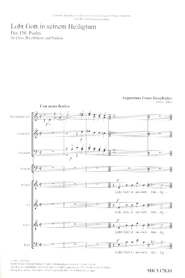 | Untertitel: | für gem Chor, Blechbläser und Pauken Partitur |
