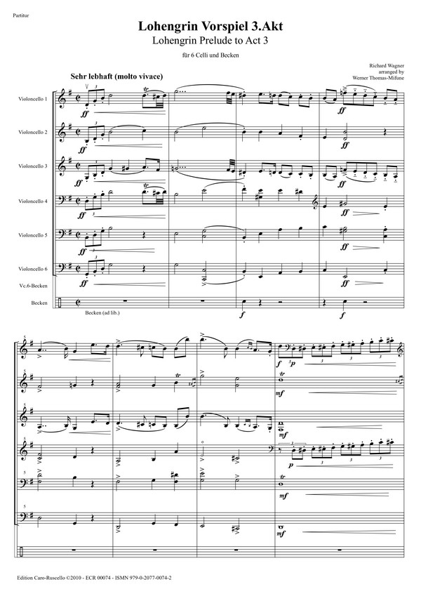 Wagner, Richard - Lohengrin Vorspiel 3.Akt - Lohengrin Prelude to Act 3 - Arr.: Thomas-Mifune, Werner - Violoncello-Sextett
