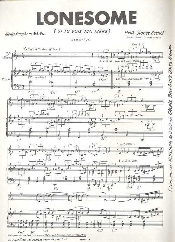 Lonesome: Einzelausgabe für Klavier und B-Instrument