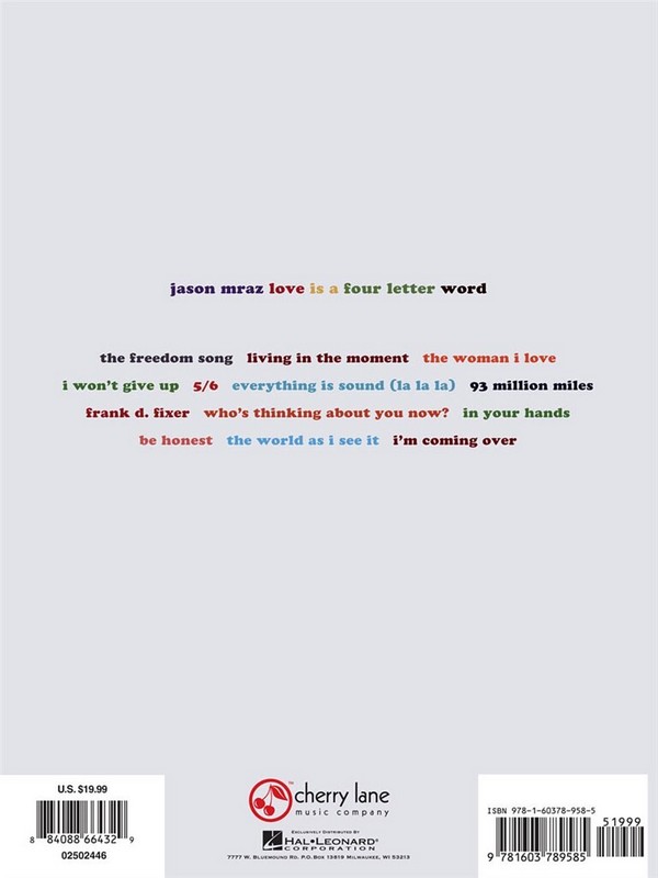Be Honest Everything Is Sound (La La La) 5/6 Frank D. Fixer The Freedom Song I Won't Give Up I'm Coming Over In Your Hands Living In The Moment 93 Million Miles Who's Thinking About You Now? The Woman I Love The World As I See It