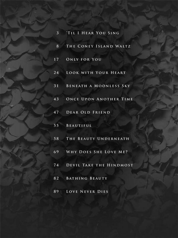 Slater, Glenn, lyrics Sequel from The Phantom of the Opera Bathing Beauty Beautiful Beneath A Moonless Sky Dear Old Friend Devil Take The Hindmost Look With Your Heart Love Never Dies Once Upon Another Time Only For Him/Only For You The Beauty Underneath The Coney Island Waltz 'Til I Hear You Sing Why Does She Love Me?