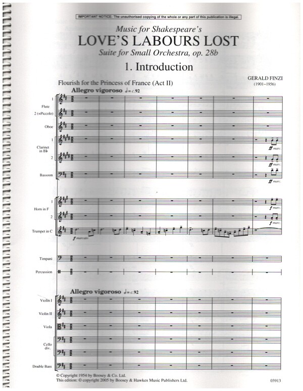 Shakespeare, William, Text Schauspiel Liebes Leid und Lust Schauspielmusik Suite für kleines Orchester op.28b 4 Lieder op.28a Musik zum Maskenspiel Fanfaren für die Vertragsschlüsse (nur zur Verwendung in szenischen Aufführungen)