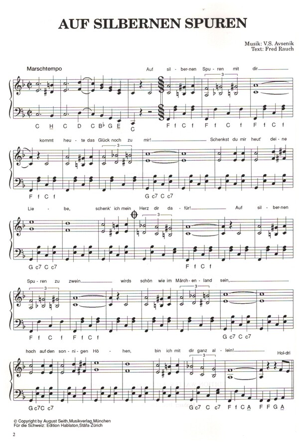 Waldvogel, heinz, ed Auf silbernen spuren Alles fahrt schi S'chlii beizli Die schlittschulaeufer Mit some gips am bei Schneewalzer Es git kei schnee in yokohama Skilager-lied Weisser winterwald Gigi vo arosa Waennd am schilift schtaasch Ski-walzer