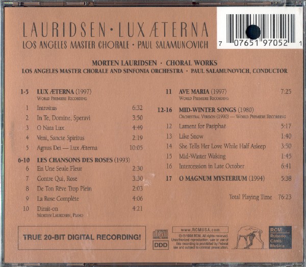 Lux aeterna Les chansons des roses Ave maria Mid-Winter Songs