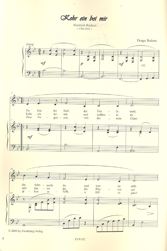 Vertonung deutscher Gedichte der Klassik Blick in den Strom Das Fenster Der Frühling hat sich eingestellt Die Zufriedenen Gefunden Harlekin Hörst Du wie die Brunnen rauschen Ich und du Kehr ein bei mir Mein Herz ich will dich fragen Sehnsucht Winternacht