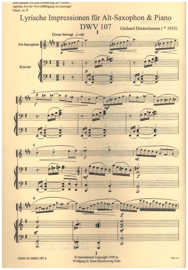 | Untertitel: | für Altsaxophon und Klavier |