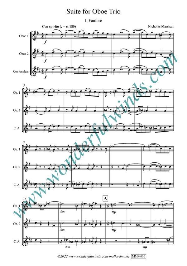 This little Suite was originally written for two talented oboe students and their teacher, when the composer was teaching music at Dartington Hall School. The four movements are bound by a stately refrain which starts and finishes the piece, and comprise a joyous Fanfare, a rustic Musette, a Lament and a boisterous Fughetta. There is plenty of contrast in these short movements, making this an ideal recital piece for an advanced group.