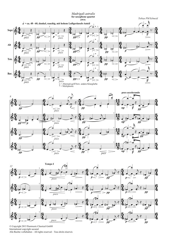 | Untertitel: | für 4 Saxophone (SATBar) Partitur und Stimmen |