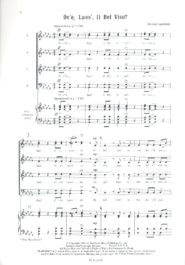 6 Fire Songs on Italian Renaissance Poems Ovè lass' il bel viso Quando son più lontan Amor io sento l'alma Io piango Luci serene e chiare Se per havervi oime