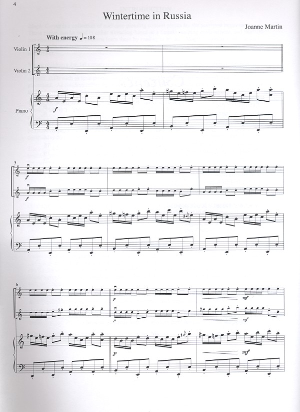 Concert Pieces for the youngest Beginner Wintertime in Russia Carnival in Rio Santiago Sunshine Tango to Trinidad Dancing in Avignon Bow River Fiddling Honolulu Hula-Dancer Chopsticks in Chinatown Atacama Crossing Cross Lake Blues Athabasca Monkey Easter Island Monkey Machu Picchu Mountain
