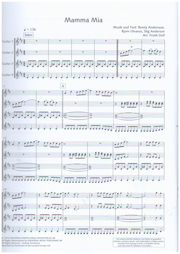 | Untertitel: | für 4 Gitarren Partitur und Stimmen |