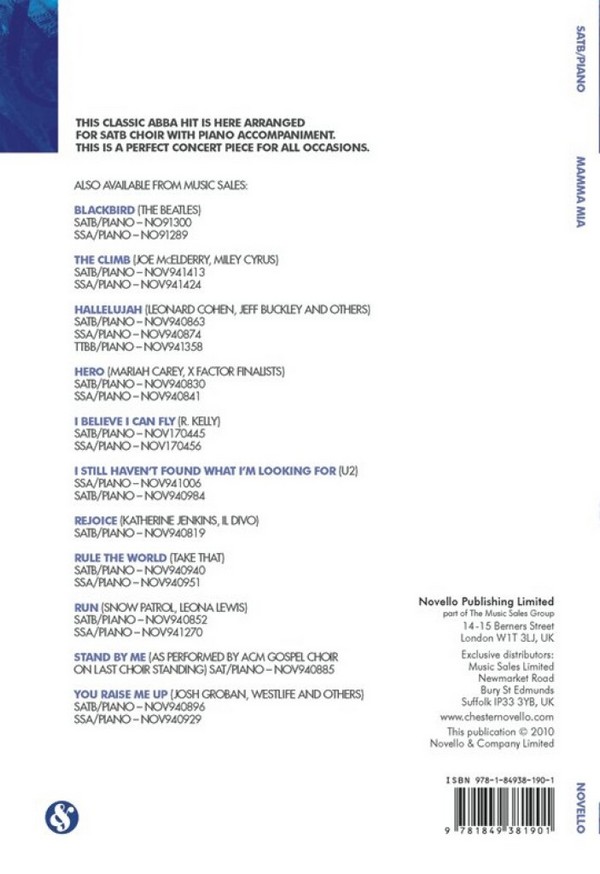 Produktinformationen "Mamma Mia for mixed chorus (SATB)"