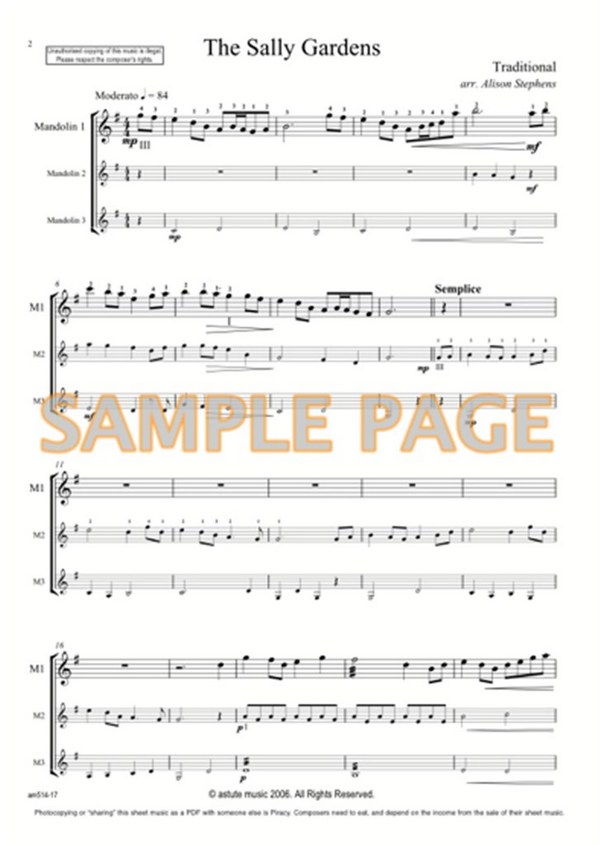 1. The Sally Gardens - traditional 2. East Parkside - Nigel Gatherer 3. Wedding Tarantella - traditional Italian