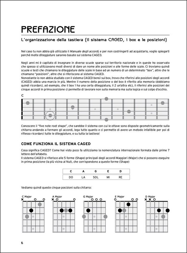 Corso completo per conoscere tutte le scale e la tastiera della chitarra 12 unit di studio con box e diteggiature Video tutorial on-line Regole per la costruzione delle scale Diteggiature standard e con 2,3 e 4 note per corda Il sistema CAGED finalmente spiegato in modo semplice e intuitivo