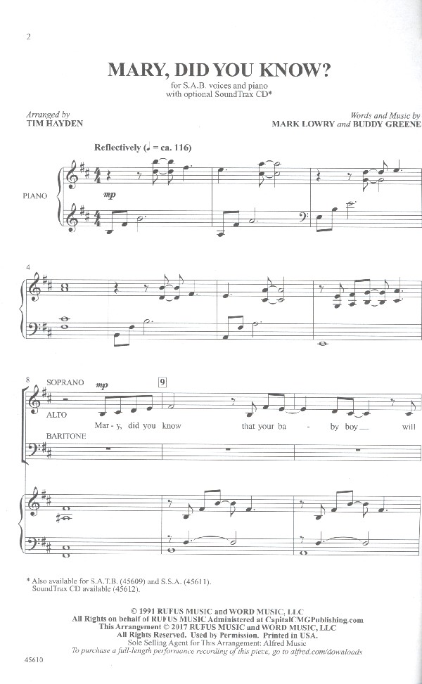 Alfred Choral Designs Recorded by over 500 artists such as Kenny Rogers and Wynonna Judd, Natalie Cole, Reba McEntire, Rascal Flatts, and Pentatonix, this tender Christmas ballad is considered a modern classic. Appropriate for both school and church settings, this dramatic choral arrangement offers each voice part a turn with the haunting melody as it builds to a powerful bridge and a contemplative close.