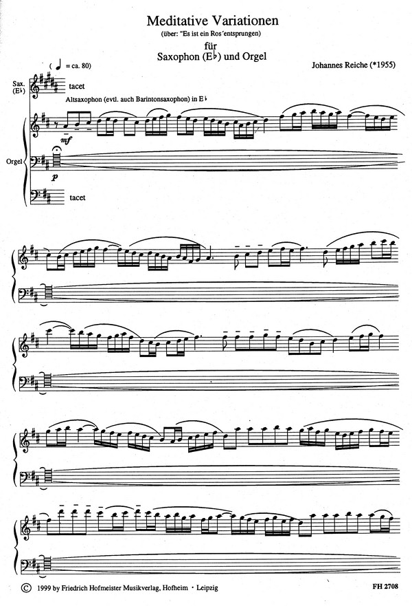| Untertitel: | für Altsaxophon und Orgel Es ist ein Ros' entsprungen |