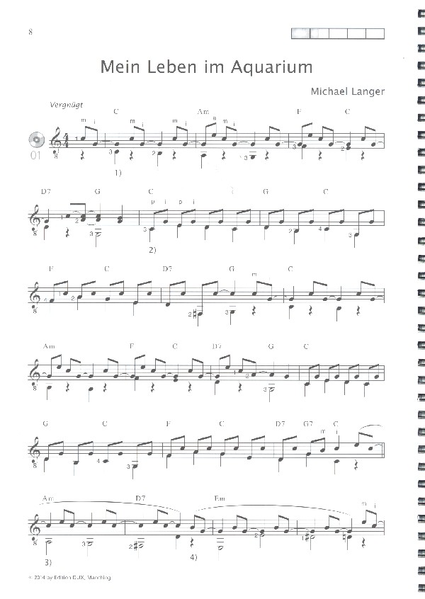 20 Kompositionen zum Thema Akkordzerlegung leicht Mein Leben im Aquarium Something in the Air Rausverkauf Teatro Colon Immer unterwegs Wenn die Tage kürzer werden Mein Geheimnis Gerührt nicht geschüttelt Durch den dunklen Dunkelwald Stiller Tanz eat it Alle schlafen schon nur du nicht Drum-Rock Die alte Burg California for free Der ruhige See Hyde Park Biking Schlaf mein Engel Catia la Mar Im Mondlicht