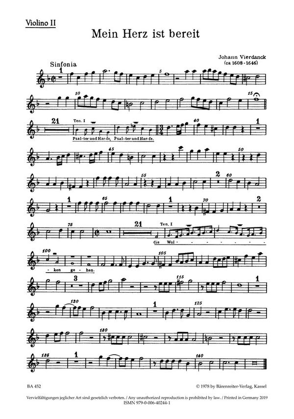 | Untertitel: | Konzert für 2 hohe Singstimmen, 2 Violinen und Kontrabaß, Partitur und Stimmen |