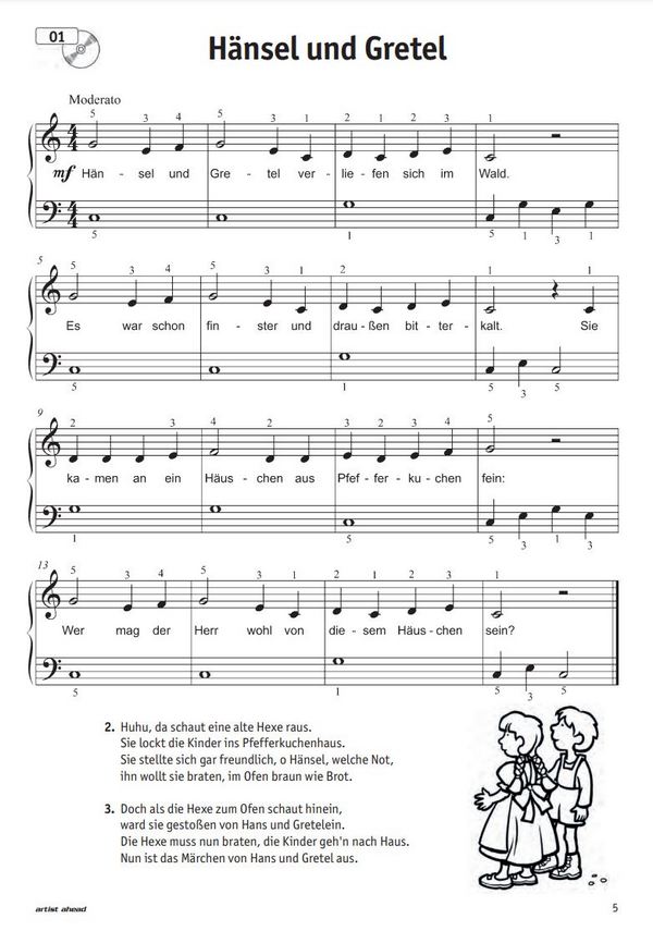 Die 50 schönsten Kinderlieder zum Spielen & Mitsingen Hänsel und Gretel Kuckuck, Kuckuck, ruft's aus dem Wald Summ, summ, summ Hänschen klein Alle meine Entchen Ringel, Ringel, Reihe Morgens früh um sechs Auf der Mauer, auf der Lauer Die Vogelhochzeit Dornröschen war ein schönes Kind Heile, heile, Segen Bruder Jakob Der Kuckuck und der Esel Backe, backe, Kuchen Drei Chinesen mit dem Kontrabass Hoppe, hoppe, Reiter Fuchs, Du hast die Gans gestohlen Grün, grün, grün, sind alle meine Kleider Die Wissenschaft hat festgestellt Mein Hut, der hat drei Ecken Laterne, Laterne Häschen in der Grube Hopp, hopp, hopp, Pferdchen lauf Galopp Happy Birthday Trarira, der Sommer, der ist da Schlaf, Kindlein, schlaf Müde bin ich, geh zur Ruh Ri, ra, rutsch A, B, C, die Katze lief im Schnee Zehn kleine Kinderlein Wer will fleißige Handwerker seh'n Brüderchen, komm tanz mit mir Heut ist ein Fest bei den Fröschen am See Komm lieber Mai und mache Alle Vögel sind schon da Ein Männlein steht im Walde Es tanzt ein Bi-Ba-Butzemann O du lieber Augustin Meine Oma fährt im Hühnerstall Motorrad Ein Mann, der sich Kolumbus nannt Zwei kleine Wölfe Die Affen rasen durch den Wald Ich freue mich, dass ich geboren bin Ich geh mit meiner Laterne Weißt du, wie viel Sternlein stehen Der Mond ist aufgegangen Schneeflöckchen, Weißröckchen Lasst uns froh und munter sein Morgen, Kinder, wird's was geben We Wish You A Merry Christmas Mein erstes Kinderliederbüchlein für Klavier ist eine liebevoll ausgewählte Sammlung der 50 beliebtesten Kinderlieder in schön klingenden und einfachen Bearbeitungen. Die Stücke, mit dazugehörigen Liedtexten, eignen sich wunderbar zum Vorspielen, Begleiten und Mitsingen. Das Büchlein beinhaltet bekannte und traditionelle Kinderlieder, welche für Anfänger und leicht Fortgeschrittene (bis zum dritten Unterrichtsjahr) gleichermaßen spielbar sind. Die Stücke sind nach Schwierigkeitsgrad geordnet, von sehr leicht über leicht bis leicht anspruchsvoll. Das Album bietet eine ansprechende Auswahl an Themen wie Spiel & Spaß, Jahreszeiten, Geburtstag, Weihnachten, Schlaflieder und vieles mehr. Mein erstes Kinderliederbüchlein für Klavier eignet sich zudem hervorragend als Ergänzung zu Jens Rupps Bestseller-Lehrwerk Meine erste Klavierschule!, da die enthaltenen Lieder die Lerninhalte der allseits beliebten Klavierschule unterstützen. Sie fördern das Rhythmusgefühl, das Noten lesen, verschiedene Spieltechniken und das Klavierspiel im Allgemeinen. Die Tonarten beschränken sich auf die leichten Tonarten C-Dur, F-Dur und G-Dur. Die Melodien umfassen zumeist den Tonumfang einer Quinte (5 Töne) bis zu einer Oktave (8 Töne). Die Lieder, deren Melodien nur aus fünf verschiedenen Noten bestehen, können mit der rechten Hand umgehend gespielt werden. In der linken Hand gilt es die Begleitung zu üben, danach behutsam das Zusammenspiel beider Hände. Mein erstes Kinderliederbüchlein für Klavier - ein motivierendes Kinderlieder-Repertoire und ein ideales Geschenk für Anfänger und leicht fortgeschrittene Klavierspieler und -spielerinnen. Download-Material & Audio-CD Unter www.artist-ahead-download.de stehen die enthaltenen Klavierstücke als Audio- und MP3-Dateien zum Download zur Verfügung.