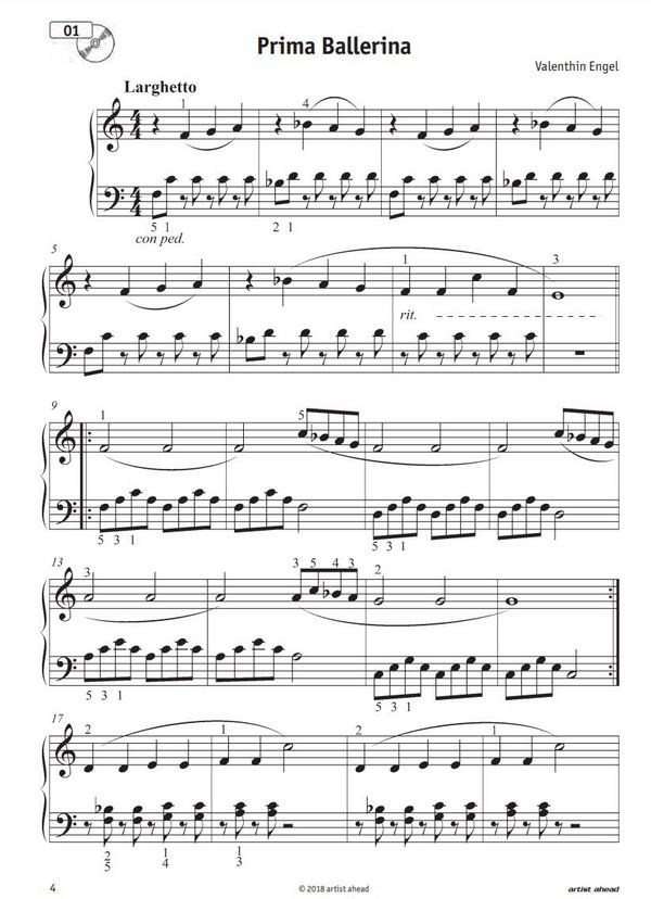 21 moderne und klasische Klavierstücke zum Vorspielen Prima Ballerina Kastagnetten & ein Kontrabass Seepferdchen Die Marionette Morgenstern Der Gondoliere El Gecko Rondo Die tanzenden Puppen Die Rosenblüte Scherzo Serenade Der Papagei Präludium Das Spukschloss Fantasie Mon chat Amadeus Romanze Chez Hugo Die Zugabe Mein kleines Klavierkonzert ist als spielerischer, motivierender Ergänzungsband zu modernen Klavierschulen gedacht und ist durch den individuellen Unterricht mit Klavierschülern entstanden. Nachdem Kinder und erwachsene Anfänger die ersten Noten im 5-Fingerbereich erlernt haben, ist es oftmals nicht leicht, weiterführende, anspruchsvolle Spielliteratur zu finden, die schön klingt, jedoch für den fortgeschrittenen Anfänger nicht zu schwer ist. Dieses Buch enthält 21 klassische und modern klingende Vortragsstücke im populären Stil, die teils an Filmmusik, aber auch an Werke klassischer Komponisten erinnern. Die Kompositionen bieten viel Klangerlebnis bei leichtem bis mittlerem technischen Schwierigkeitsgrad, wobei der Tonumfang im Laufe des Buches behutsam aufgebaut und stetig erweitert wird. Die Themen sind mit Mittelteilen und Durchführungen so arrangiert, dass die Klavierstücke etwas länger sind und bereits einen konzertanten Charakter haben. Die klassischen Elemente sind auf moderne Art und Weise in die Stücke eingefügt und für jeden besteht die Möglichkeit, die Stücke für sich selbst zu entdecken und je nach Können und Geschmack auf persönliche Weise zu interpretieren. Download-Material & Audio-CD Unter www.artist-ahead-download.de stehen die enthaltenen Klavierstücke als Audio- und MP3-Dateien zum Download zur Verfügung.