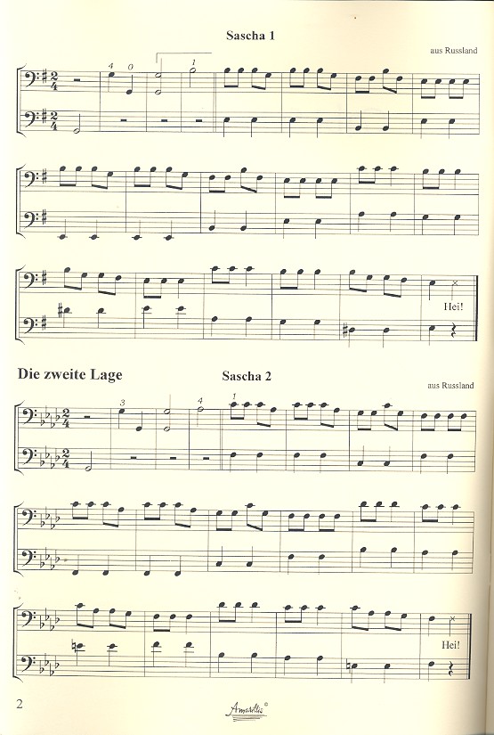 Celloschule für junge Cellisten von Gabi Scheungraber Nach Heft 1 (enger Griff in der 1. Lage) und Heft 2 (die weiten Griffe in der 2. Lage) ist jetzt Heft 3 mit dem Lagenspiel 1. - 4. Lage fertig. Der Schüler lernt die 2., 3. und 4. Lage anhand von Volksmusik aus dem ganzen europäischen Raum. Die kurzen Stücke sind in Dur und Moll für das Ohr gut zu lernen. Für die Stabilität in der Intonation helfen sehr leicht zu hörende zweite Stimmen, auch bei den Lagenwechselübungen. Die Schülerhand geht immer im engen Griff in die Lagen und muss erst dann in den tiefen weiten Griff geöffnet werden.