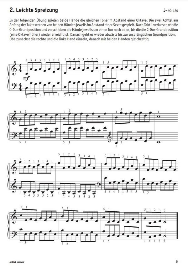 27 klassisch-moderne Spiel- und Übungsstücke für Klavier Keyboard, Orgel für Kinder ab 8 Jahren und Erwachsene Fingertraining leicht gemacht Gründlich & effektiv Geläufigkeit, Beweglichkeit & Schnelligkeit Kraft & Ausdauer Schnelle Fortschritte Spaß beim Üben & Spielen Jens Rupp ist seit 25 Jahren als Klavierdozent tätig. Mit dieser Erfahrung hat er nun ein Lehrwerk geschaffen, das seine bisherigen Lehrmethoden und positiven Erfahrungen als Lehrer miteinander vereint. Meine besten Fingerübungen wurde sorgfältig an das Konzept von Meine erste Klavierschule sowie der Fortsetzungen Meine zweite Klavierschule und Meine dritte Klavierschule angepasst. Die 27 enthaltenen Übungen und Spielstücke sind für das zweite und dritte Unterrichtsjahr geeignet und stellen auch für fortgeschrittene Spieler eine sinnvolle Ergänzung dar. Sie fördern die Geläufigkeit, Beweglichkeit und Schnelligkeit, sowie die Kraft und Ausdauer der Finger, aber auch die Koordination der rechten und linken Hand. Der durchdachte, logisch strukturierte Aufbau der Lektionen erleichtert das Lernen und motiviert darüber hinaus mit 11 klang-effektiven Übungsstücken in den Tonarten C-Dur, F-Dur, G-Dur, A-Moll und D-Moll. Meine besten Fingerübungen beinhaltet Unisono-Übungen, das Spreizen der Finger, Akkorde und Akkordzerlegungen, Geläufigkeitsübungen, das Spiel mit Oktaven, das Staccato-Spiel, Tonleiterübungen, die Bluestonleiter und schöne Spielstücke mit Einflüssen aus Klassik, Rock und Pop. Da die Zeit für das Üben durch Schule und Arbeit oftmals knapp bemessen ist, eignet sich das Konzept von Meine besten Fingerübungen hervorragend, um mit relativ kleinem Aufwand große Fortschritte zu erzielen. Dies führt zu hör-und greifbaren Erfolgserlebnissen am Instrument. Achtelnoten in C-Dur Leichte Spreizung Übung mit Terzen Spiel mit Sexten Übung in der C-Dur-Grundposition Übung mit ausgehaltenen Präludium in D-Moll Übung mit Achteltriolen Terzen in G-Dur Tonleiter-Übung Staccato Akkorde und Achtelnoten Achteltriolen Finger spreizen Übung mit Achteltriolen und Oktaven Übung in A-Moll Übung in F-Dur Übung mit Sexten in F-Dur S olo Kirchentonleitern und Akkorde in F-Dur Terzen in C-Dur Klassik-Rock Präludium in A-Moll Sechzehntel-Noten in G-Dur Bluesrock und die Bluestonleiter Präludium von Bach